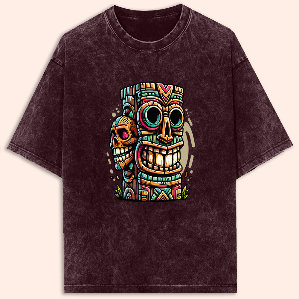 Tiki Totem Acid Wash Oversized T-Shirt